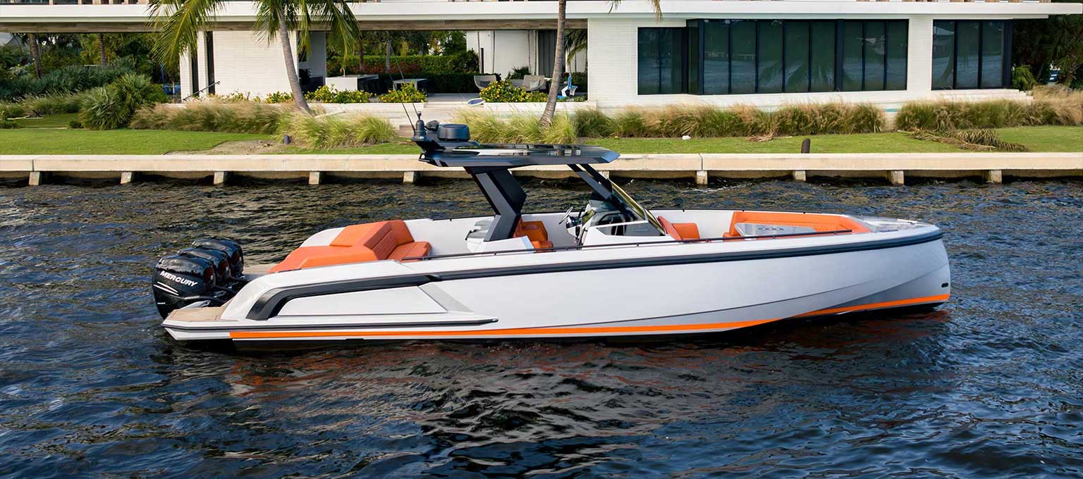The Mercury Verado engine and lightweight fiberglass hull deliver exhilarating acceleration and effortless control at up to 55 knots.