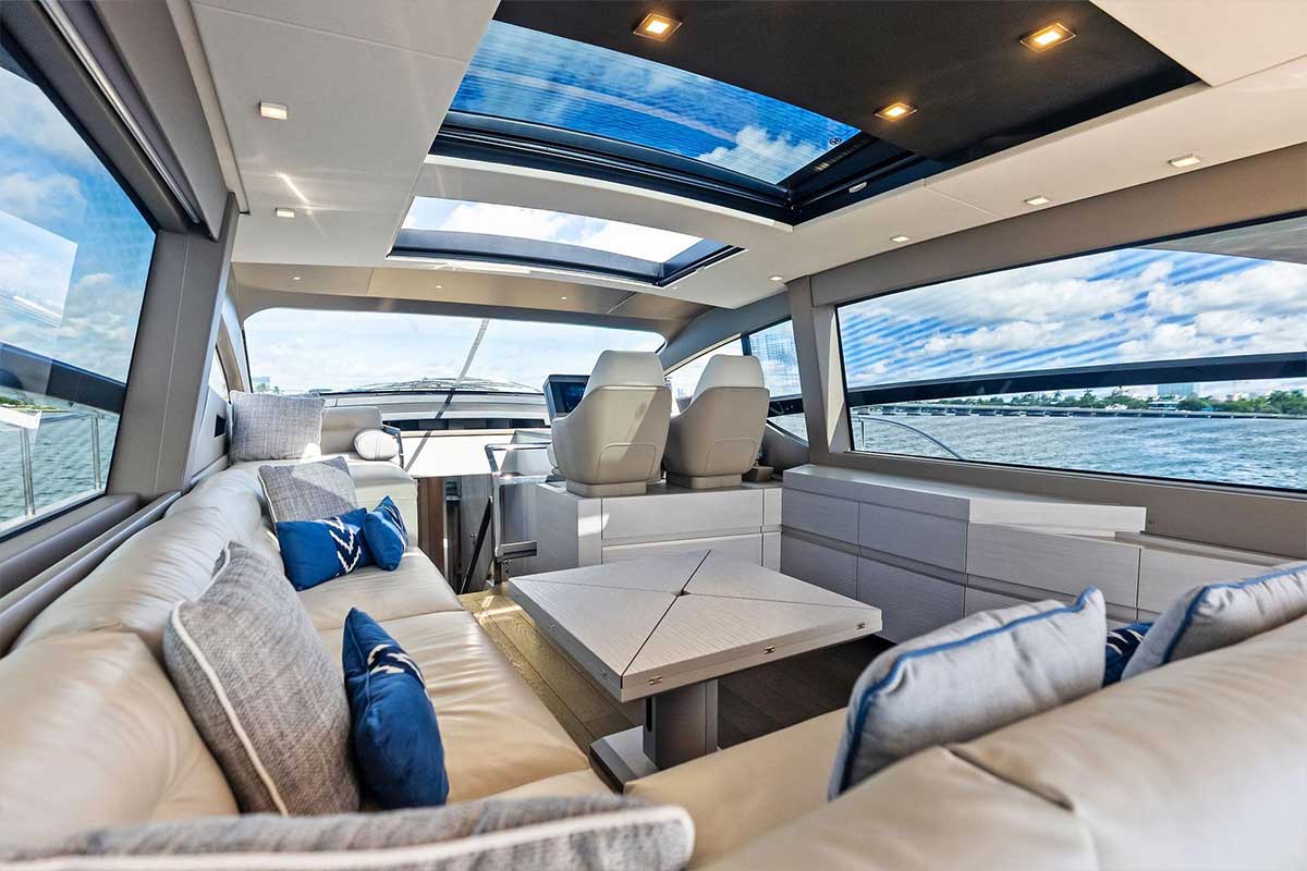 open spaces allow the boat to be filled with pleasure and light, such as the large lounge characterized by the front
