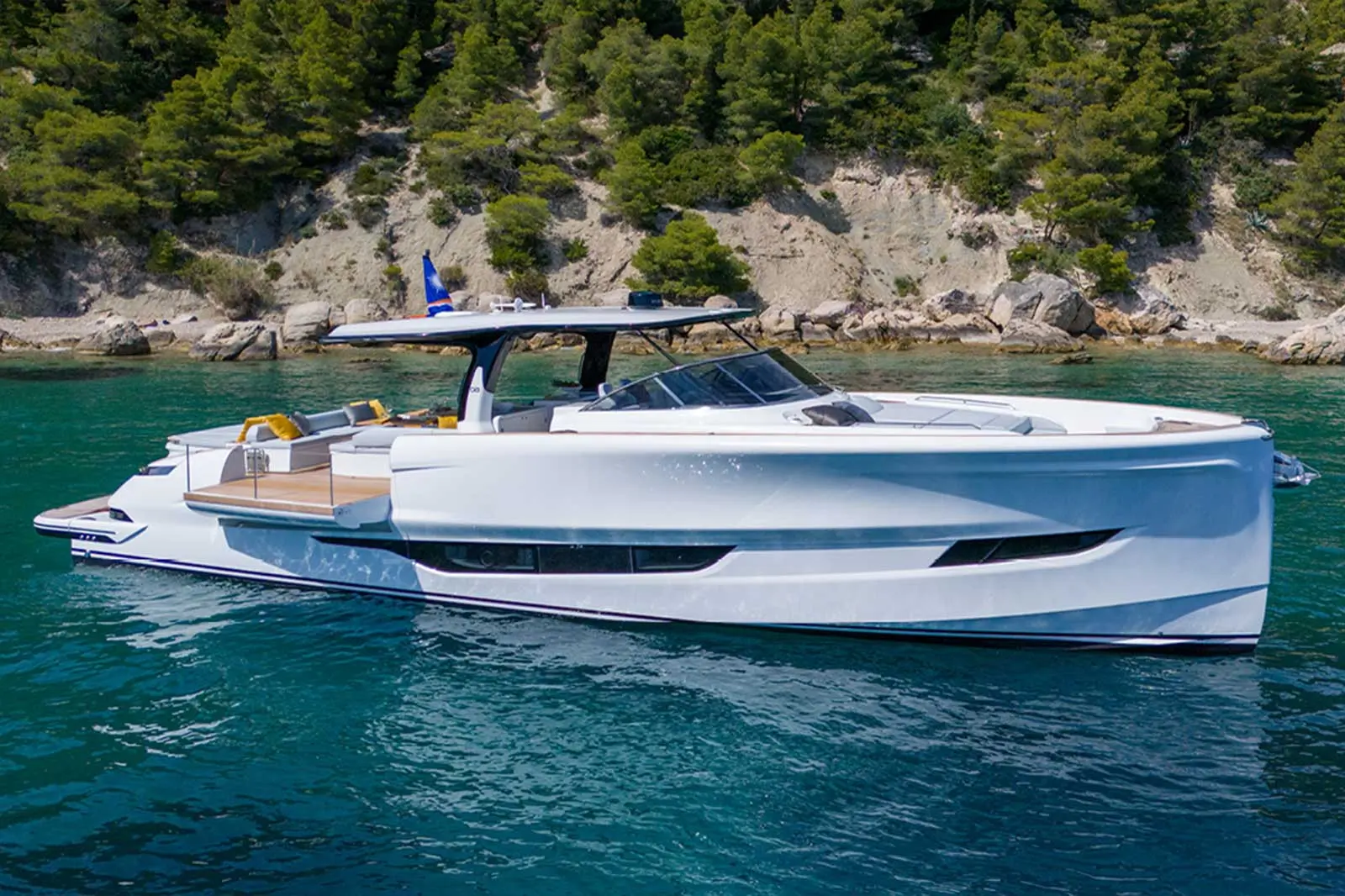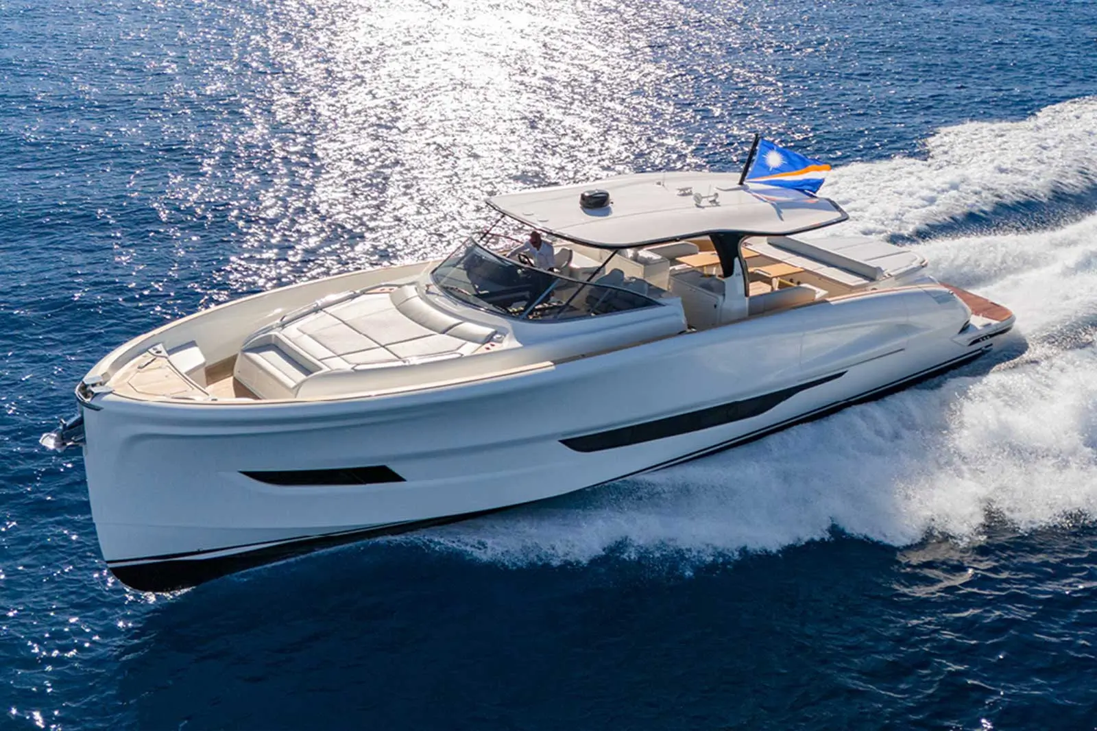 This pre-owned unit offers all the performance, style, and innovation Solaris Power is known for – including the signature flush deck, aft sunbed, and separate glass-door shower cabin – at a competitive value.